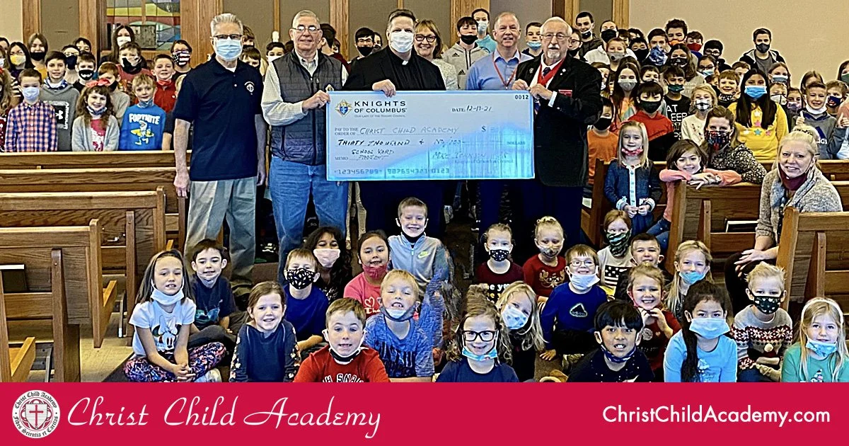 Christ Child Academy recently received a generous donation from The Knights of Columbus. A check for $30,000 was presented to Christ Child Academy to be used towards new playground equipment. Thank you to the Knights of Columbus for their generous donation and partnership of Catholic schools! Learn More About Christ Child Academy >