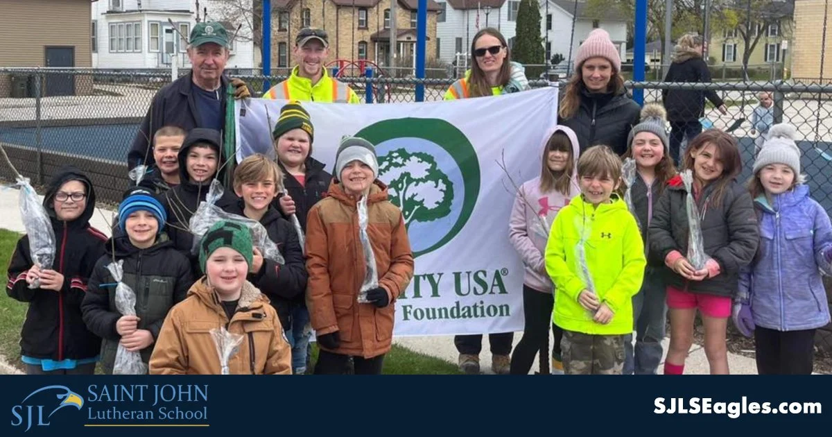 St. John Lutheran of Plymouth 2nd graders had a busy day recently! They planted a tree at school and built a city in their classroom..